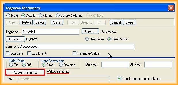 2.- Una vez creado el Access Name, vamos a añadir los items (variables), seleccionamos su correspodiente Access Name y utilizaremos el uso del nombre del tag como nombre del item (variable)