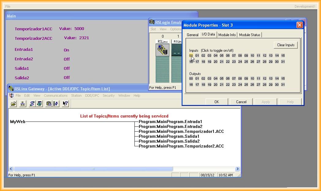 En esta práctica vamos a comunicar Intouch con RSLogix Emulate 5000 a traves del FSGateway que a su vez enlaza con la Configuración del RSLinx como servidor OPC.