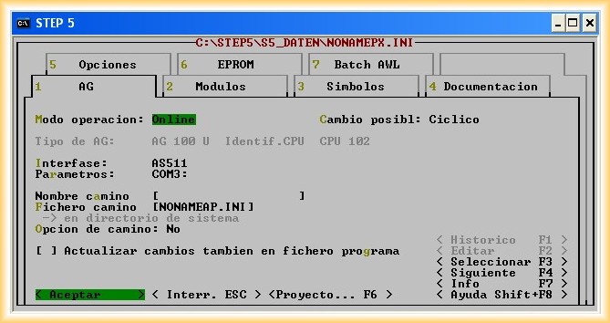 2.- Si abrimos nuestro Step5 y tratamos de comunicar estableciendo el puerto COM3, el resultado será: