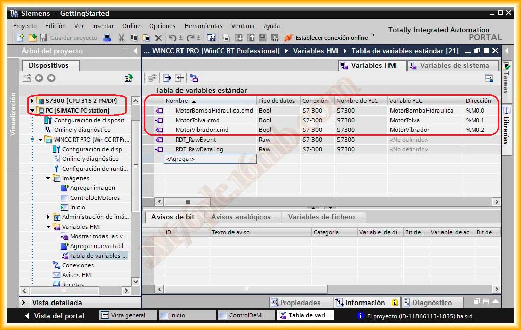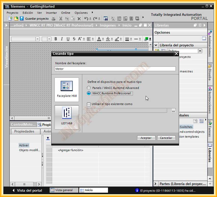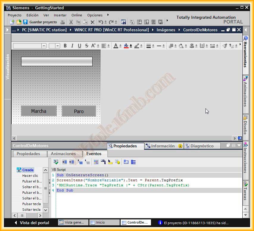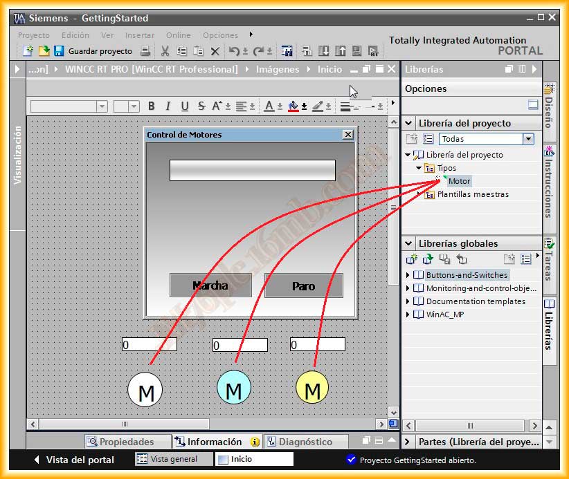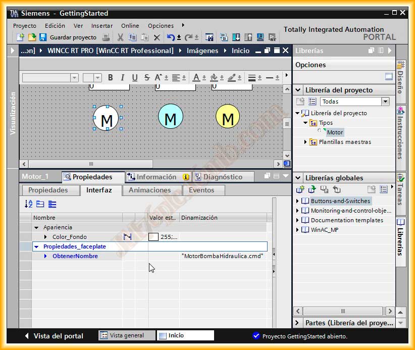 En una práctica anterior configure en el WinCC V7 una ventana emergente para controlar varios Motores, en este caso, vamos a realizar la misma práctica pero aplicada al TIA Portal WinCC RT Professional, el cual incorpora algunas novedades