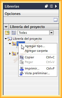 El siguiente paso será la creación del faceplate, aquí hay una notable diferencia a la hora de crearla, ya que para ello debemos irnos a libreria del proyecto y lo que debemos de hacer es Agregar tipo, acto seguido se nos abrira una ventana emergente donde configurar el tipo de dispositivo donde se va a ajecutar, no todos los dispositivos pueden ejecutar faceplates.