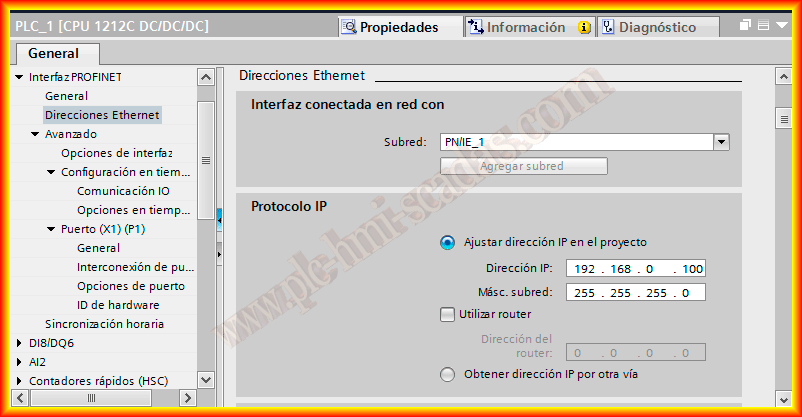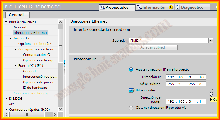 Nuestro proyecto contara con una dirección IP del PLC y la unión a una Subred, tenemos básicamente dos opciones, o acceder al Servidor Web dentro de la misma subred, donde este estará conectado a un schwich, donde no es necesario seleccionar el checkbox Utilizar router, por otra parte si queremos tener acceso desde internet, si que es necesario configurar la puerta de enlace, que es la dirección del router