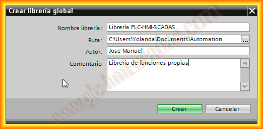 El primer paso va a ser Crear la Libreria, le damos el nombre que nos interese al igual que el directorio en el que se creará. Se puede completar con el Autor y Comentario