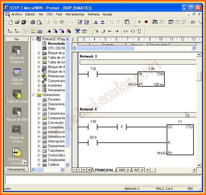 Para comprobar que funciona correctamente he creado unos segmentos en un programa del microwin para el 200 donde aquí se puede observar algunos de ellos.