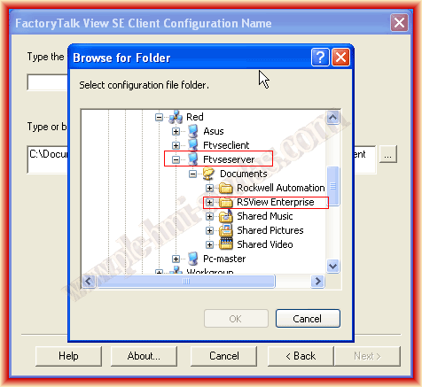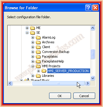 El procedimiento a partir de aquí es el mismo que habiamos visto, la única diferencia es que ahora debemos seleccionar el directorio en el Servidor y el proyecto del HMI Server