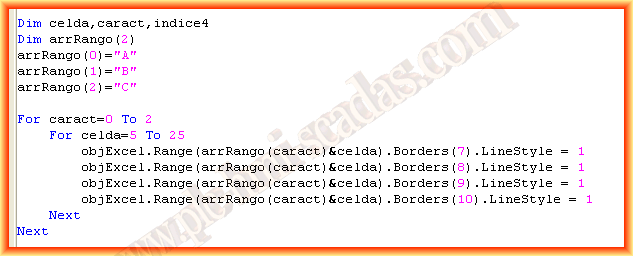 El siguiente fragmento de código lo vamos a aplicar para darle un poco de formato a la hoja, lo que hace es ponerle borde a un rango de celdas.