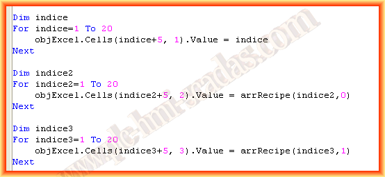 Hay que recordar, que habiamos creado un array arrRecipe(20,20) para guardar los 20 códigos de los ingredientes, mas los 20 pesos, a mas del nombre de la receta y el número de código de la receta. Aunque ahora cuando trabajemos con excel, esté ordén ya está realizado.