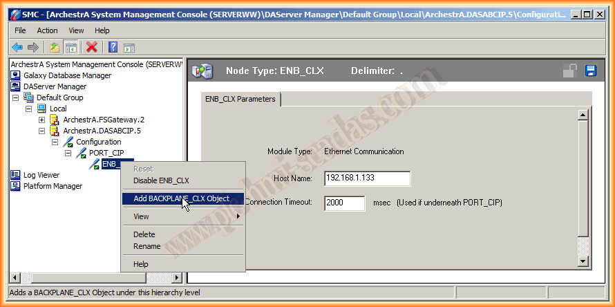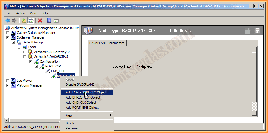 Este objeto no tiene ninguna configuración posible, con lo cual Una vez añadido el Backplane, nos resta añadir el objeto Logix5000