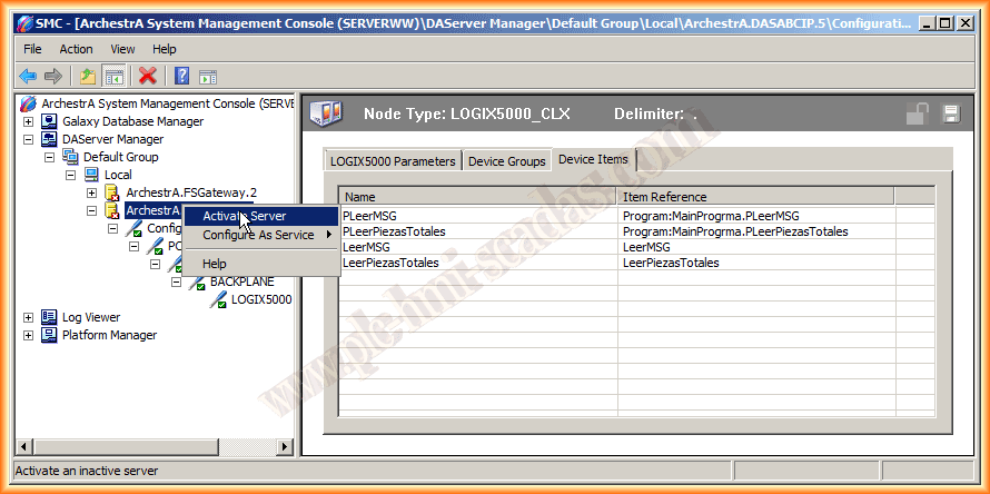 Guardamos los cambios y vamos a comprobar que la configuración realizada es correcta y funcione. Activamos el Servidor y a los Servidores DAServer, podemos acceder o bien por DDE/SuiteLink o por OPC.