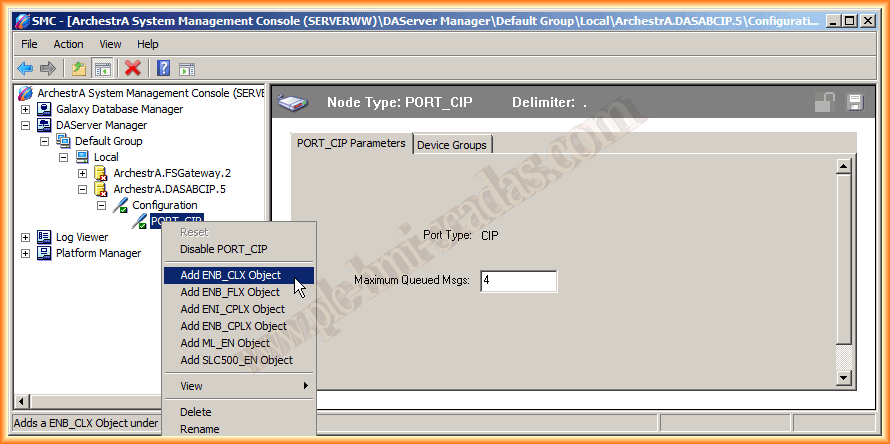 Una vez agregado el Puerto, dependiendo de la configuración que vayamos a realizar, seleccionaremos el objeto correspondiente, para nuestro caso, según el esquema visto, añadimos el ENB_CLX Object