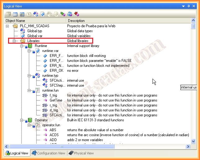 Al haber creado nuestro programa, ya nos aparece un arbol jerarquico, donde nos aparece el Objeto Global, en el cual declararemos las variables que sean Globales como bien indica su nombre y por defecto nos aparece las librerias predeterminadas.