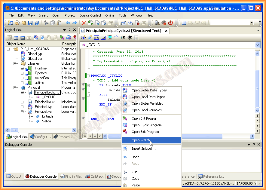 Y dentro de mi programa principal y ciclico escribimos el código, yo como previamente habia seleccionado lenguaje estructurado escribo la siguiente sentencia condicional y ya esta listo para probar.