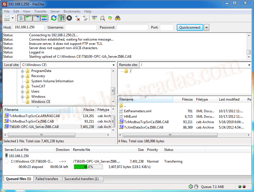 Ya hemos visto como conectarnos remotamente con el CERHOST y administrar nuestro sistema. Una vez habilitado el Servidor FTP, vamos a transferir el archivo para instalar el Servidor OPC UA en nuestro dispositivo.