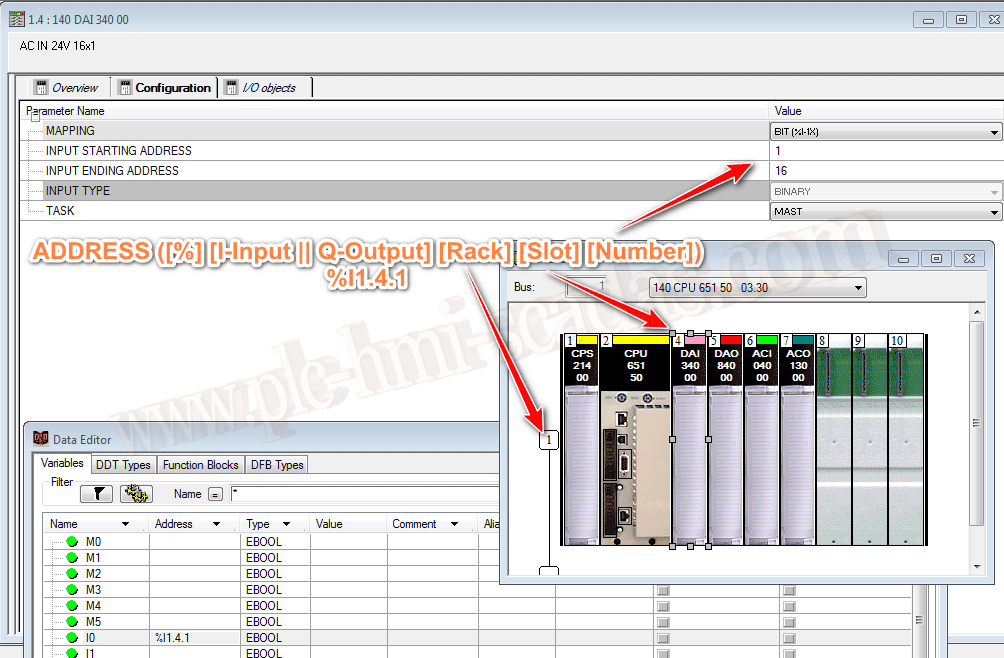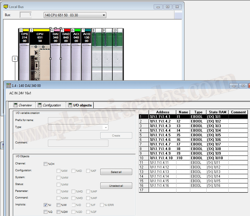 Hemos definido una tarjeta de entradas digitales, en su configuración esta definido que empieza por el %I1-%I16