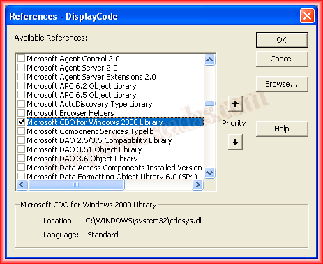 Una vez definido esto, con el botón derecho abrimos el editor de VBA Code, y lo que vamos a crear es una función para enviar el mail, pero para ello previamente tenemos que agregar una referencia al objeto Microsoft CDO for Windows 2000 Library, esto lo hacemos desde Tools -> References y la agregamos.