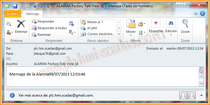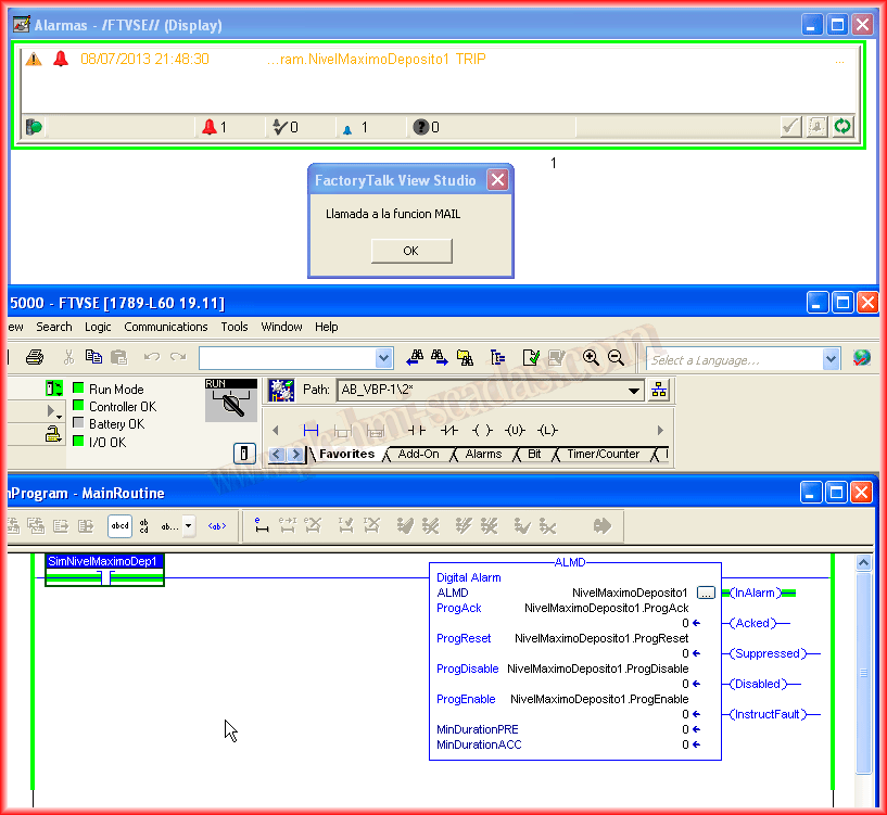 En esta practica vamos a ver como fácilmente podemos enviar un e-mail desde nuestro Scada en Factory Talk View, esto es posible debido al uso de VBA (Visual Basic for Aplication). El objetivo es enviar un e-mail cuando se ha producido una determinada Alarma en el Sistema, vamos a considerar que la Alarma es el nivel de un Deposito y vamos a utilizar la estructura de la definición de una Alarma Digital como vimos en la practica anterior.