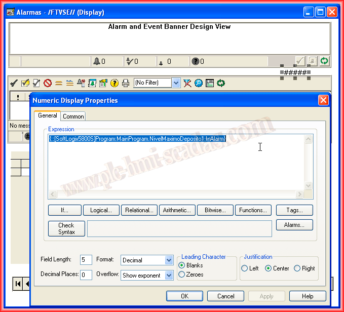 Hemos insertado un objeto del tipo Numeric Display, que tranquilamente puede estar oculto, lo que previamente hacemos es asociarle el bit de Alarma activa.