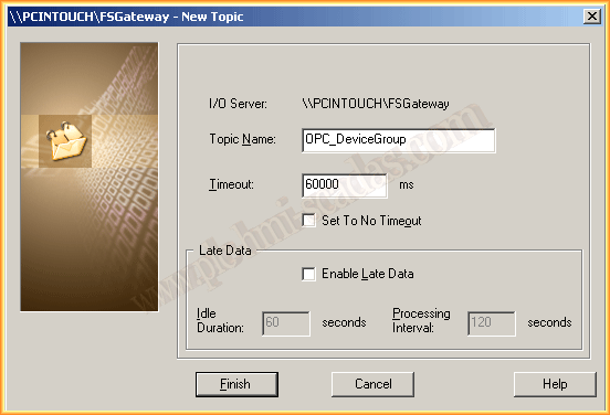 Aparece el asistente y agregamos el nombre del nuevo Topic, ojo, tenemos que agregar el topic que ya tenemos definido en el Servidor DAServer FSGateway en el PC PCINTOUCH.