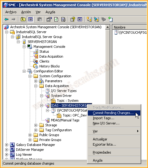 Una vez realizados todos los cambios, para que se lleven a cabo tenemos que ejecutar el Commit Pending Changes
