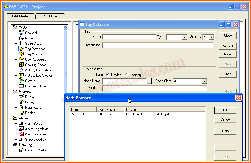 Ya hemos visto un ejemplo de la configuración de Direct Driver y OPC Server, en esta ocación vamos a ver como configurar una comunicación DDE Dinamic Data Exchange con RSView32 y Microsoft Excel.