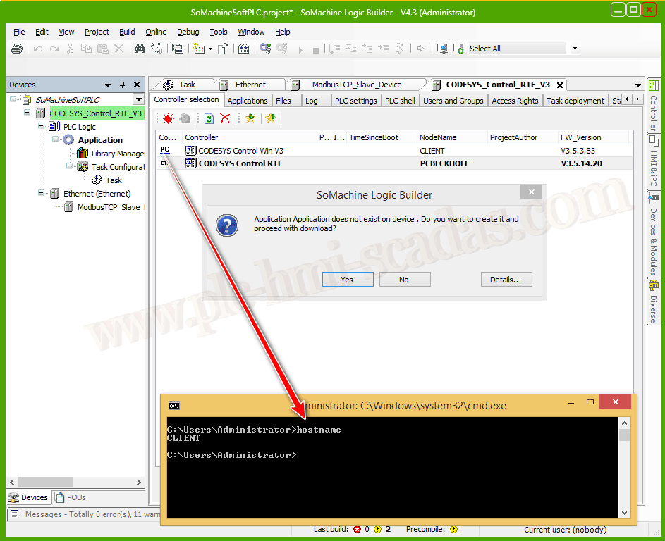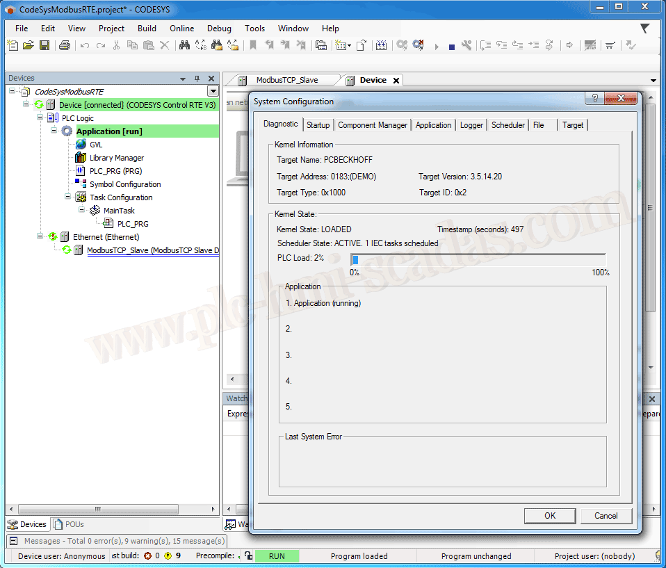 Por otra parte, si hacemos la misma configuración y probamos con CodeSys, las comunicaciones ModbusTCP funcionan correctamente. He probado la comunicación con WinCC y todo perfecto. También funciona perfectamente con CodeSys Win V3