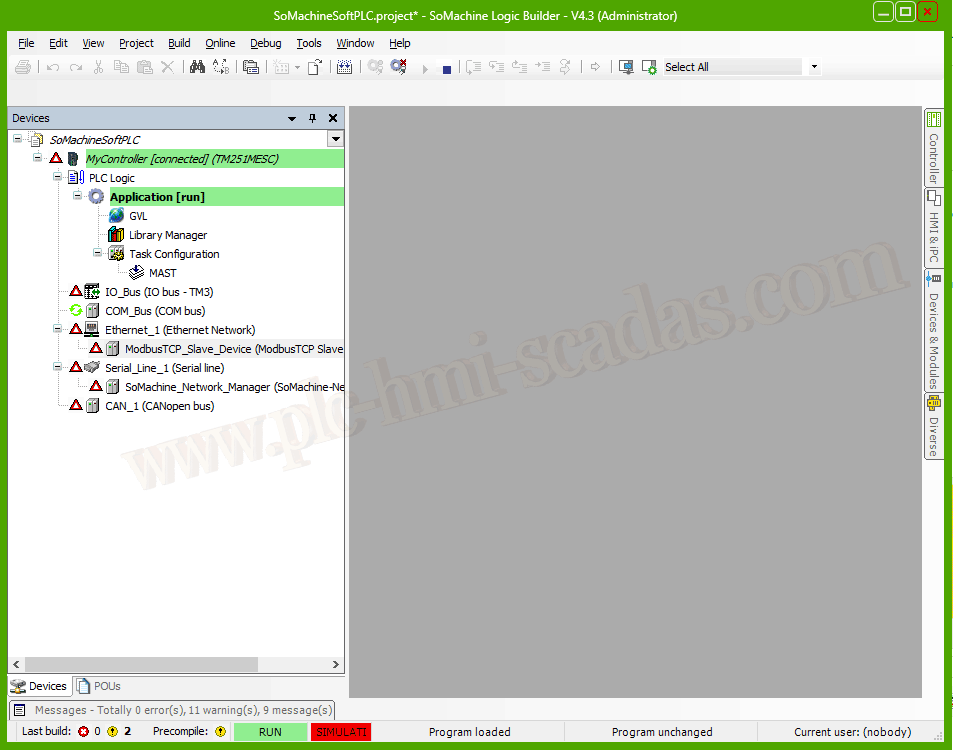 Para empezar vamos a decir que con la versión SoMachine v4.3 la simulación de las comunicaciones NO FUNCIONAN !!!