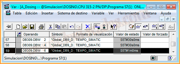 Pero vamos a empezar desde el principio, considerando que en nuestro proyecto de Step7 tenemos una serie de temporizadores y estos tenemos que llevarlos a WinCC, vamos a seguir el ejemplo del DB309.DBW6