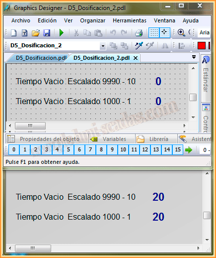 El asunto en cuestión es que he utilizado dos tipos de escalados para ver el tiempo en segundos, que es lo que necesito mostrar en el Scada