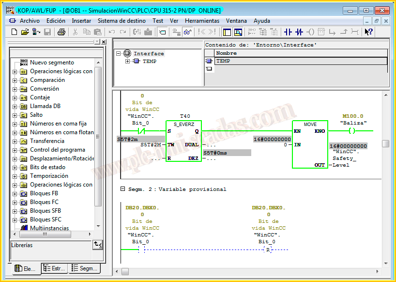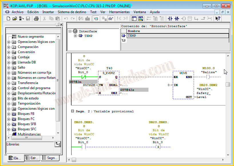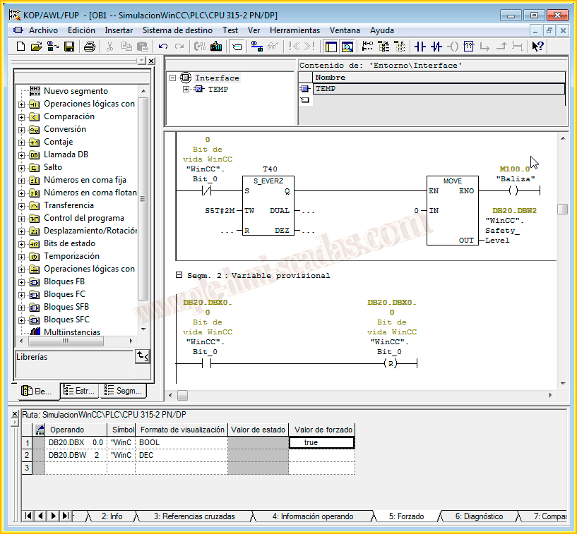 Si ponemos a trabajar nuestros segmentos, como no hay ninguna otra programación, donde esté el bit de vida en cuestión, por defecto llegara el tiempo se activará y hay quedara activo, pues hasta aquí, esto es todo lo que haremos un el PLC, ahora pasaremos al Scada, a WinCC