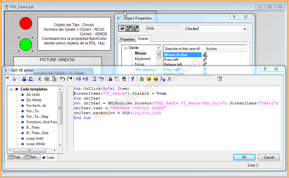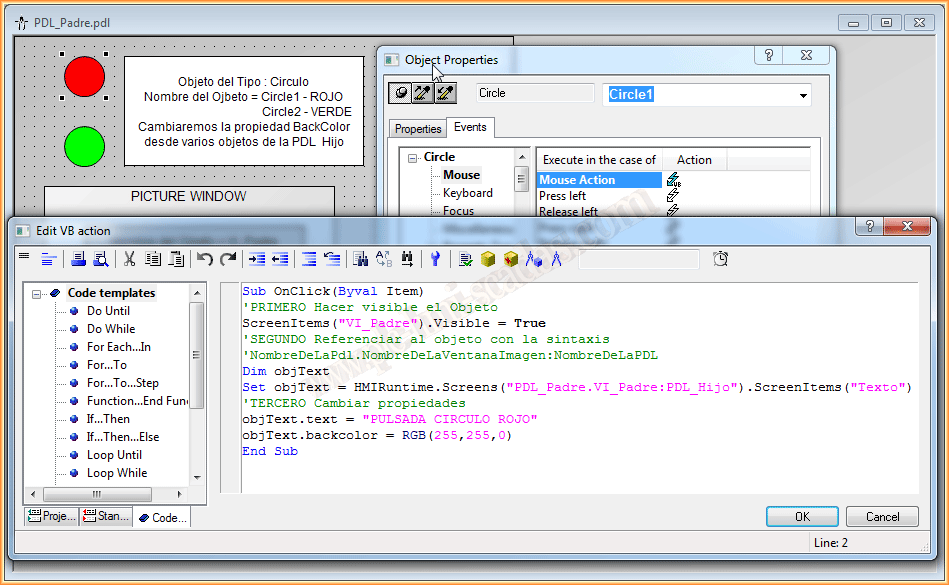 Pues una vez creadas todas las pdl y todos los objetos, vamos a pasar a implementar el código VBScript. Como se puede apreciar el código completo con su descripción esta en las imagenes adjuntas.