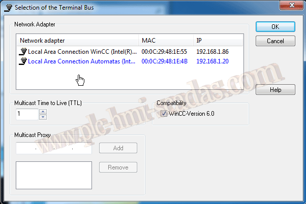 Aquí comprobamos las tarjetas de Red que tenemos y debemos tener seleccionada la que corresponda a la Red de los PC´s donde esta instalado WinCC, en este caso este era el error. Estaba seleccionada la tarjeta de red de los Automatas.