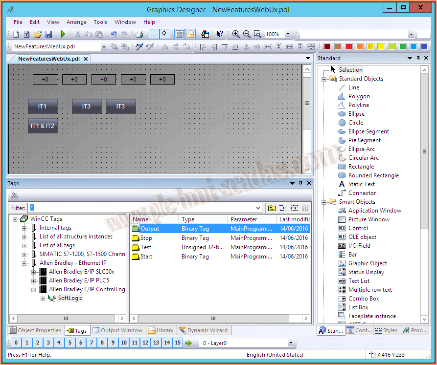 Aunque en la información especifica que se han introducido dos nuevos controles, habria que decir que realmente solo se ha introducido uno nuevo y mejorado otro, ya que el WinCC SysDiagControl, lo arrastramos desde la versión 7.2