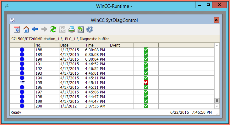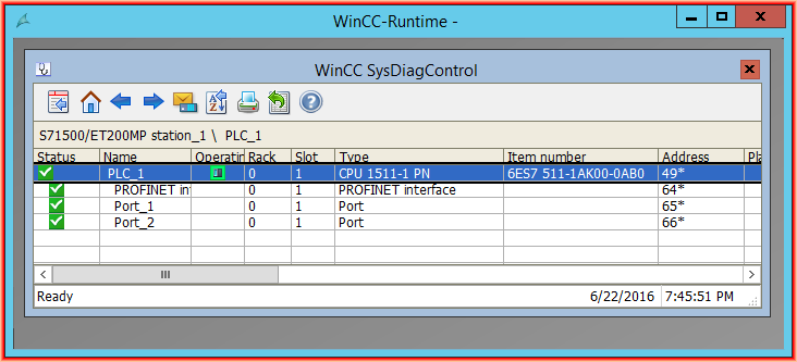 Aquí podemos ver el control WinCC SysDiagControl y toda la información que nos aporta este control sobre las conexiones.