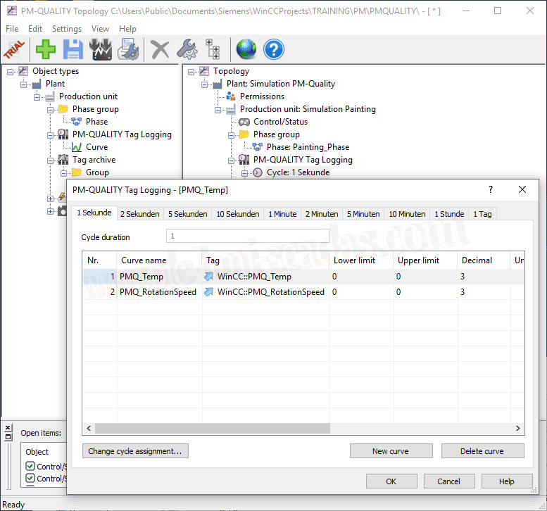En el apartado de Trend Curve, podremos visualizar todos los Tags, que hemos considerado que tenemos que registrar.