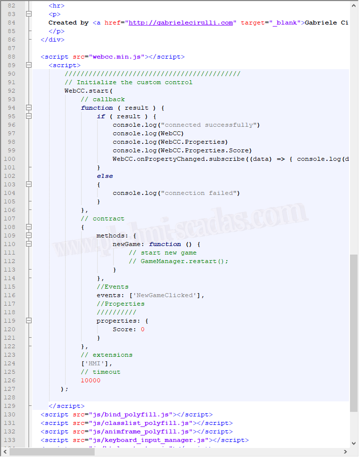 En el archivo principal de nuestro controls, en este caso index.html, es donde vamos a llamar a esta libreria, y donde se definen propiedades , eventos y métodos del control que hemos creado.