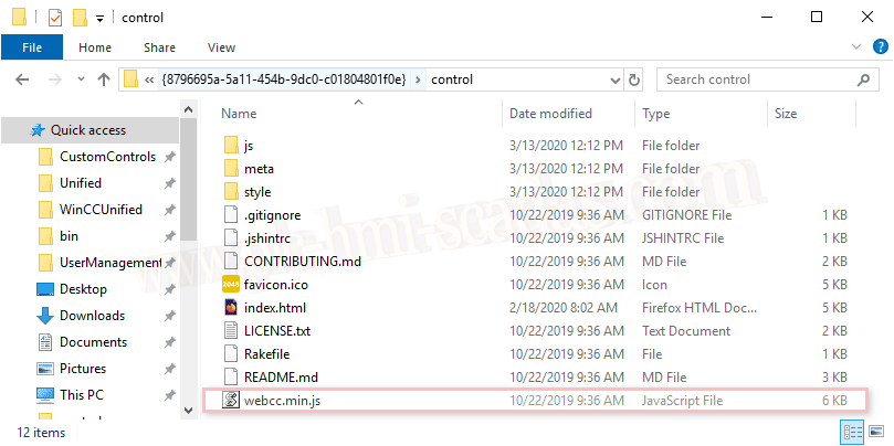 El directorio control, esta todo el código que hemos generado al crear el control, mas un archivo webcc.min.js