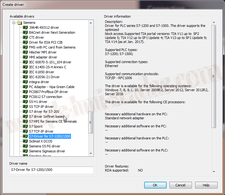 SCADA ZENON Supervisor (COPA-DATA) Driver Siemens s7-1200/1500