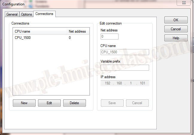 Por último, falta definir los parámetros del PLC, Net Address, Nombre que le asignamos a la CPU, Prefijo en caso que nos interese y la dirección IP del PLC.
