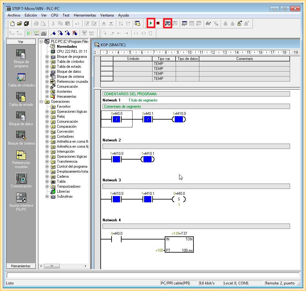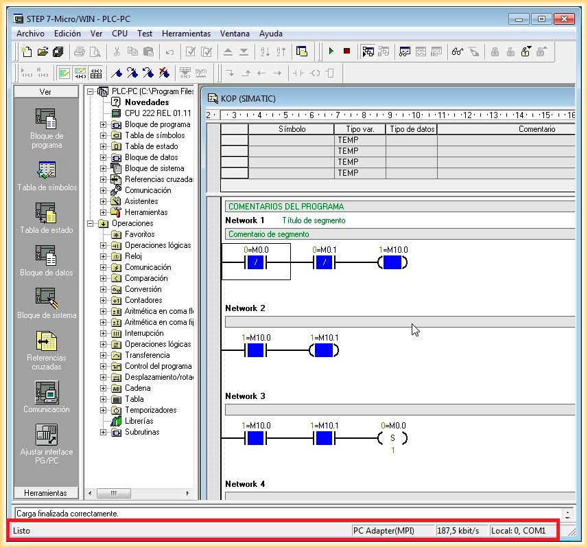 1.- I will carry out the following practice on a 32-bit Windows 7 Operating System. For Microwin to work correctly, SP8 needs to be installed; if it were 64-bit, SP9 would be required. Since the equipment has an RS-232 serial port, I will use the standard PC/PPI cable.
