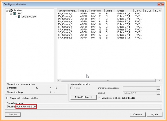 Another clarification to make is where "PLC.315 2DP" comes from; this is the reference to access the items through the OPC, which is the name assigned to the PLC and the model of the PLC. It can also be observed when configuring the Hardware of the station: