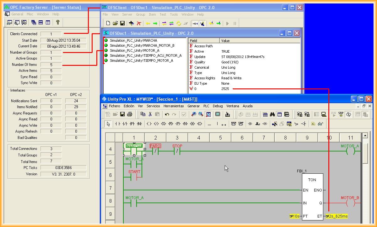 9.- And finally, we check that there is communication and that the configuration is done correctly. With this configuration we have done, we can now configure any SCADA that has OPC drivers and access our PLC.