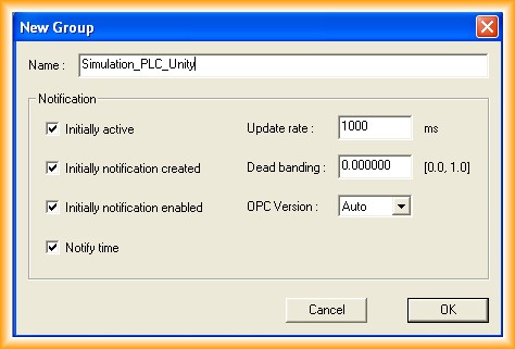 2.- For this example, I will use the Virtual PLC from the Unity Simulator, which was configured in the following practice. We select the options according to our needs.