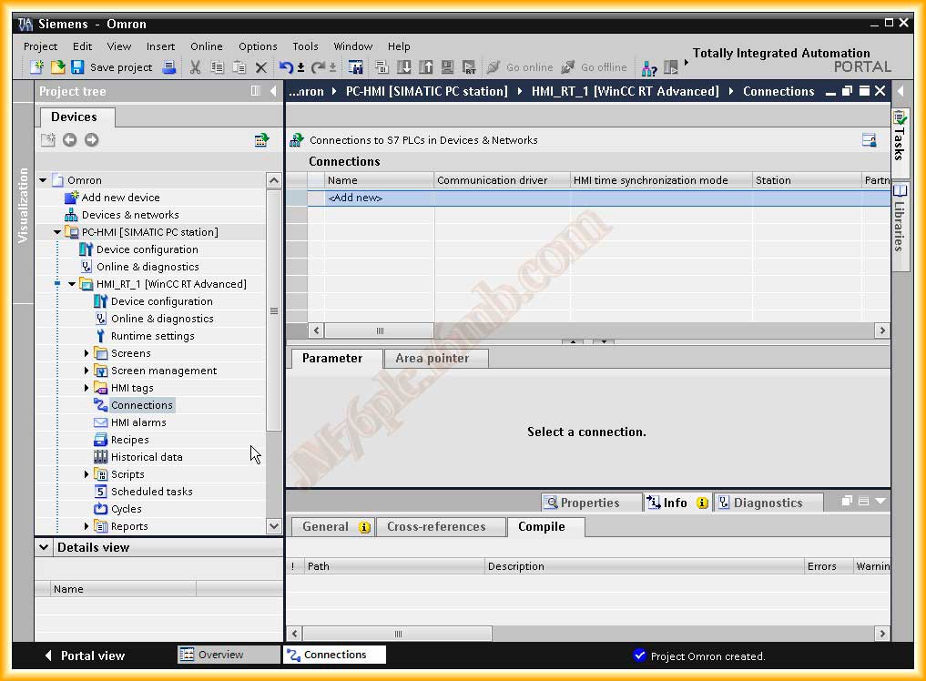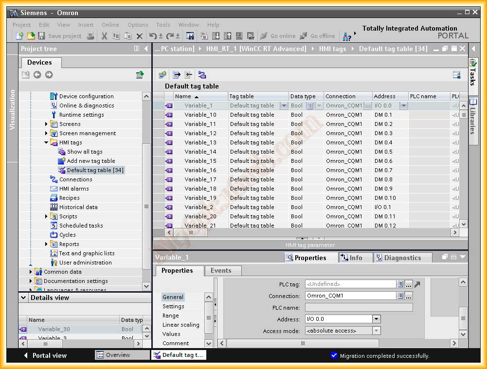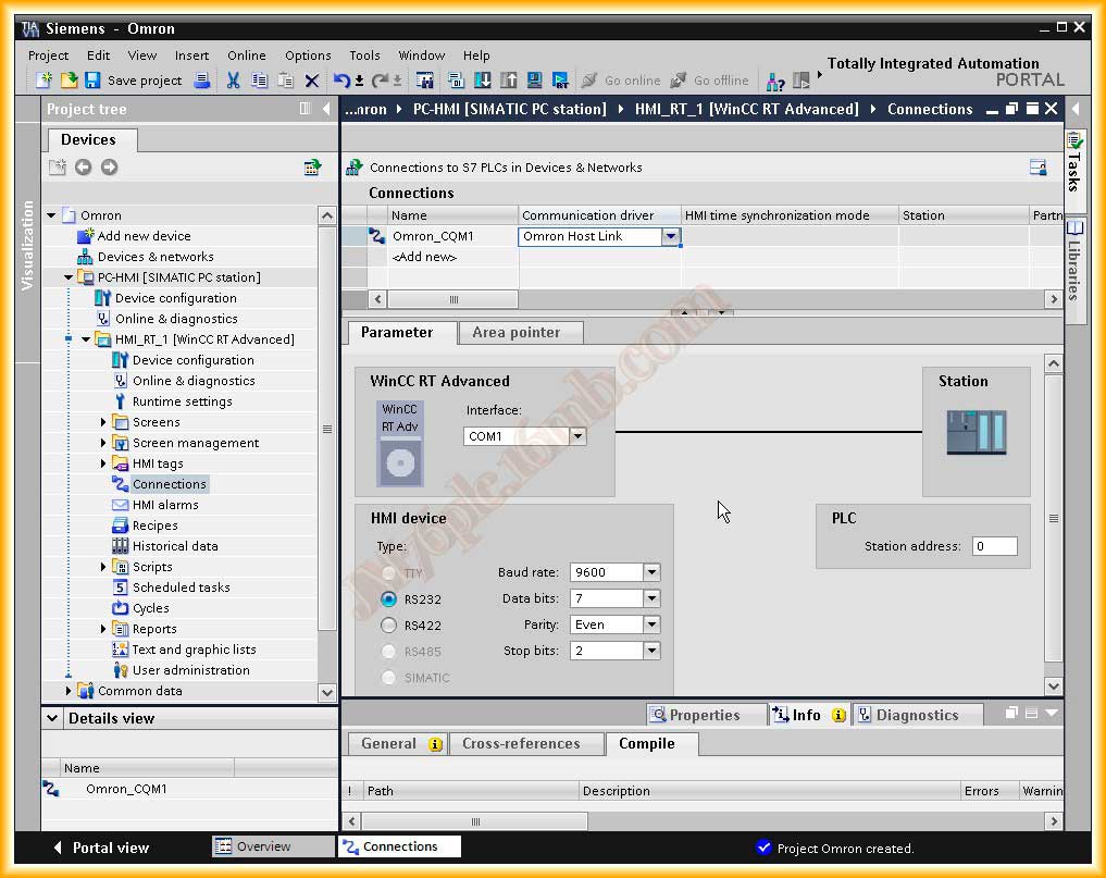 In this practice, we will configure a link between a PC with WinCC RT Advanced, which would be the successor of WinCC Flexible RT, and an Omron PLC, to be more precise, a CQM1. We start from the basis that we have created our PLC project.