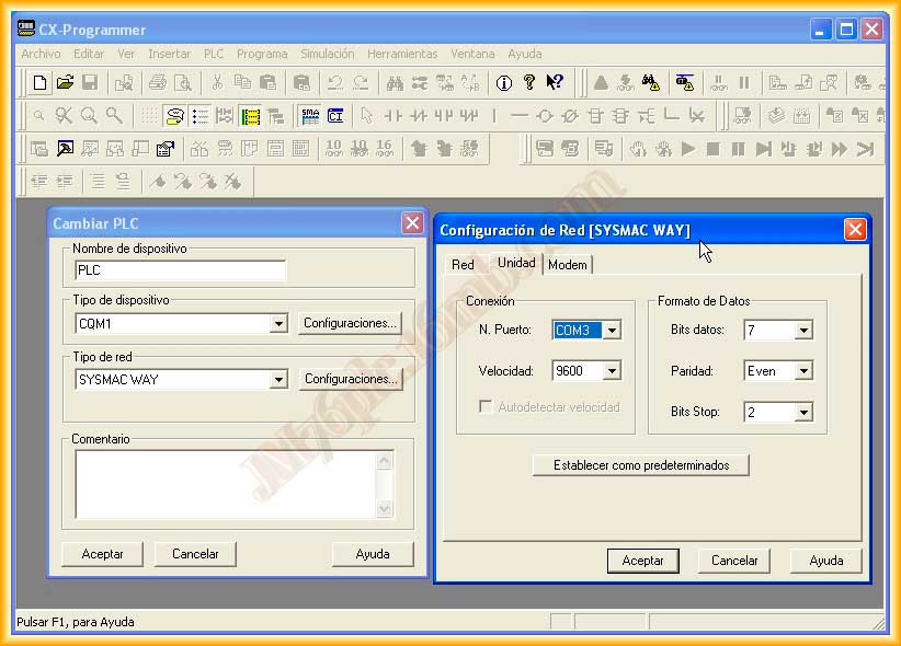 We add the name we are interested in and in the driver, we select Omron Host Link. By default, COM1 port and default values appear, these are correct if we have respected these parameters when configuring the PLC port, as can be seen below. If necessary, adjust them to the values; otherwise, it will give us a communication failure.