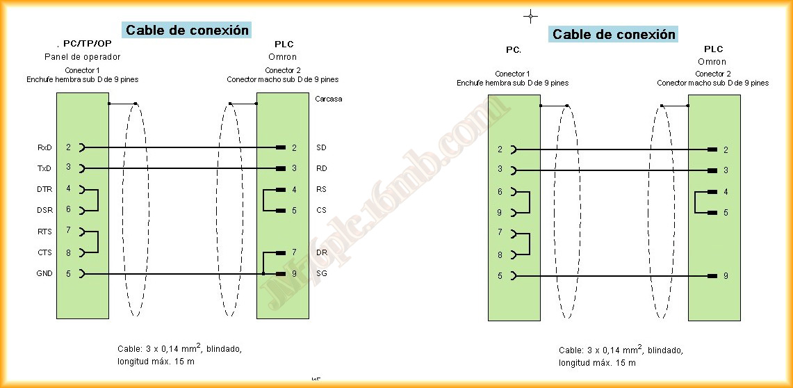 Finally, the cable used for the connection between the PC and the PLC serial port is the following, although the one used for the transfer between PC and PLC, that is, the one on the right, also works perfectly; for that reason, I have added it.
