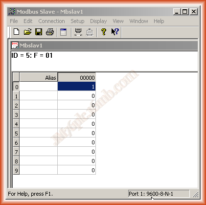 And as in our program function, we have set that we are going to write in the output area, we configure it the same way in Slave Definition, and automatically when connecting, the first register is set to 1. This was the output we configured with the Done bit when initializing and activating Modbus communication, and it is written in the slave because the input I0.0 has been activated, since when Firts is activated, the function MBUS_MGS is executed. Perhaps a more practical example would be to activate a drive with the corresponding programming logic, send it the setpoint, etc...