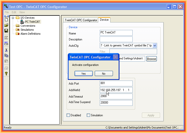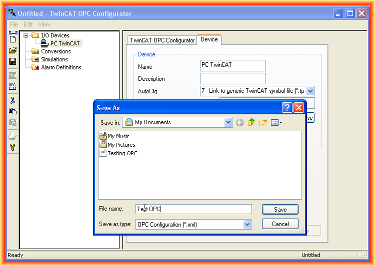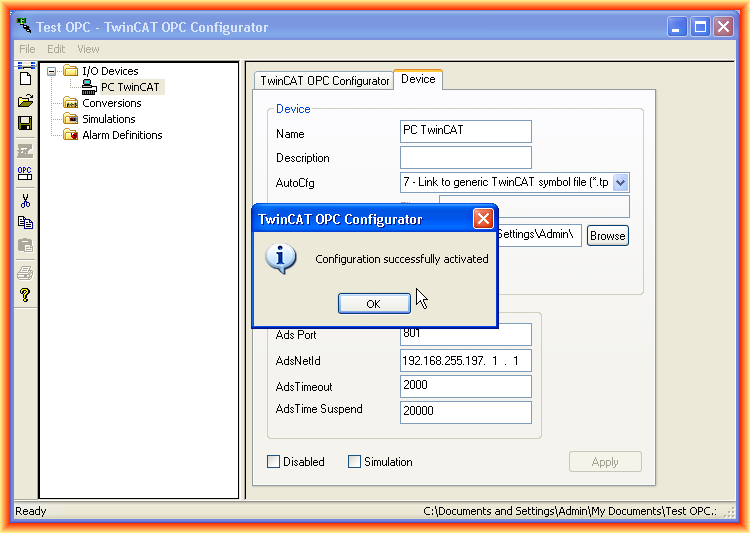 With these simple steps, we have configured the OPC Server; we just need to save and generate our XML file and activate the server, for this we save.