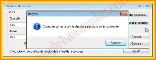Following the mentioned instructions, we select USB as the medium to be used, and to check that there is communication, we click on the Check connection button. A pop-up window appears, and the connection is correct.