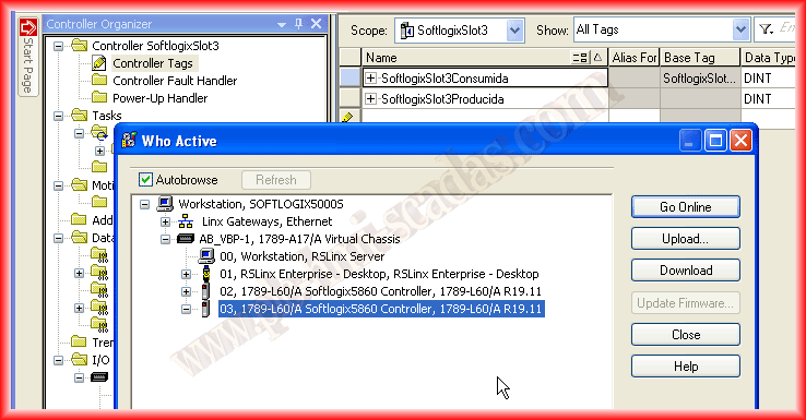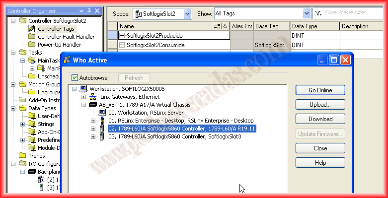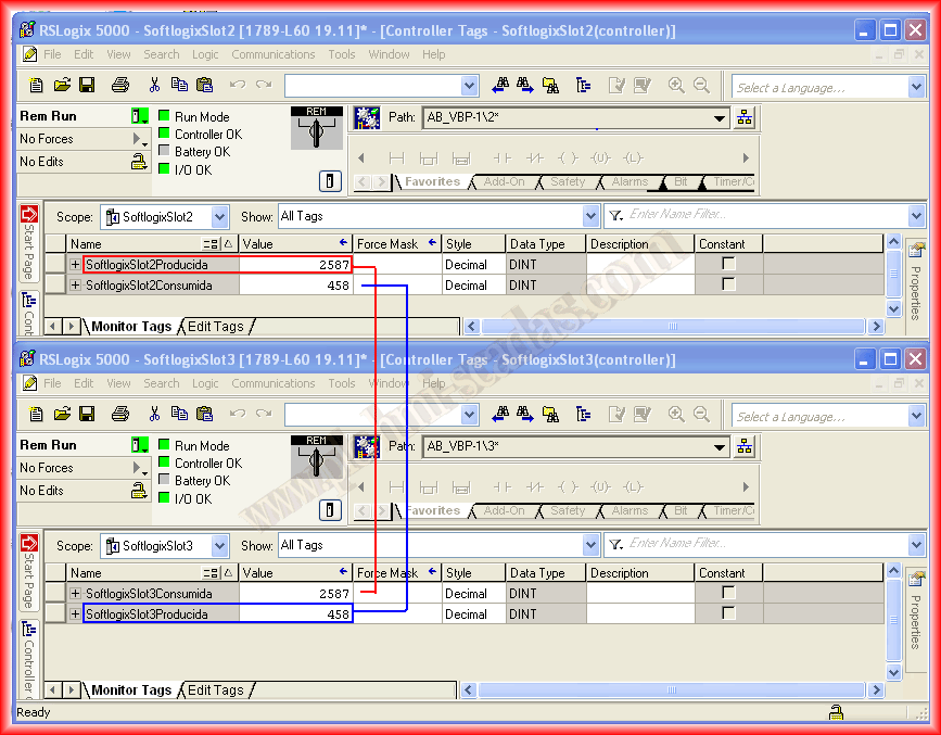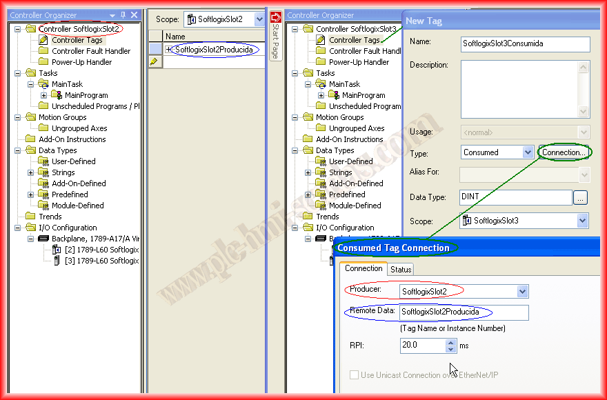 The example would be as follows: the value we have in our variable SoftlogixSlot2Produced will be received in the Tag SoftlogixSlot3Consumed.