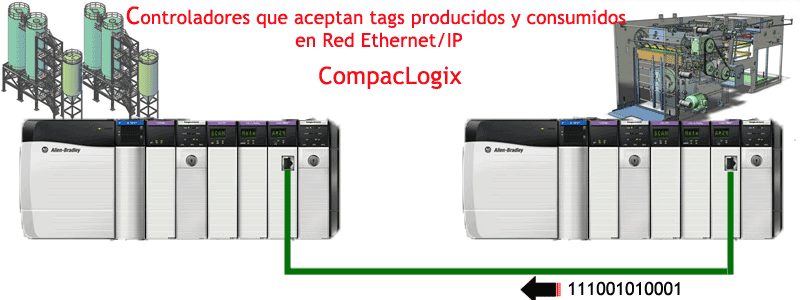 If we want to do the same practice but on an Ethernet/IP Network, the procedure for defining the variables is exactly the same, but when configuring the consumed tag, as we have seen, it asks who the producer is. This is where we need to configure the link on the Ethernet network. The following animation shows how it should look.